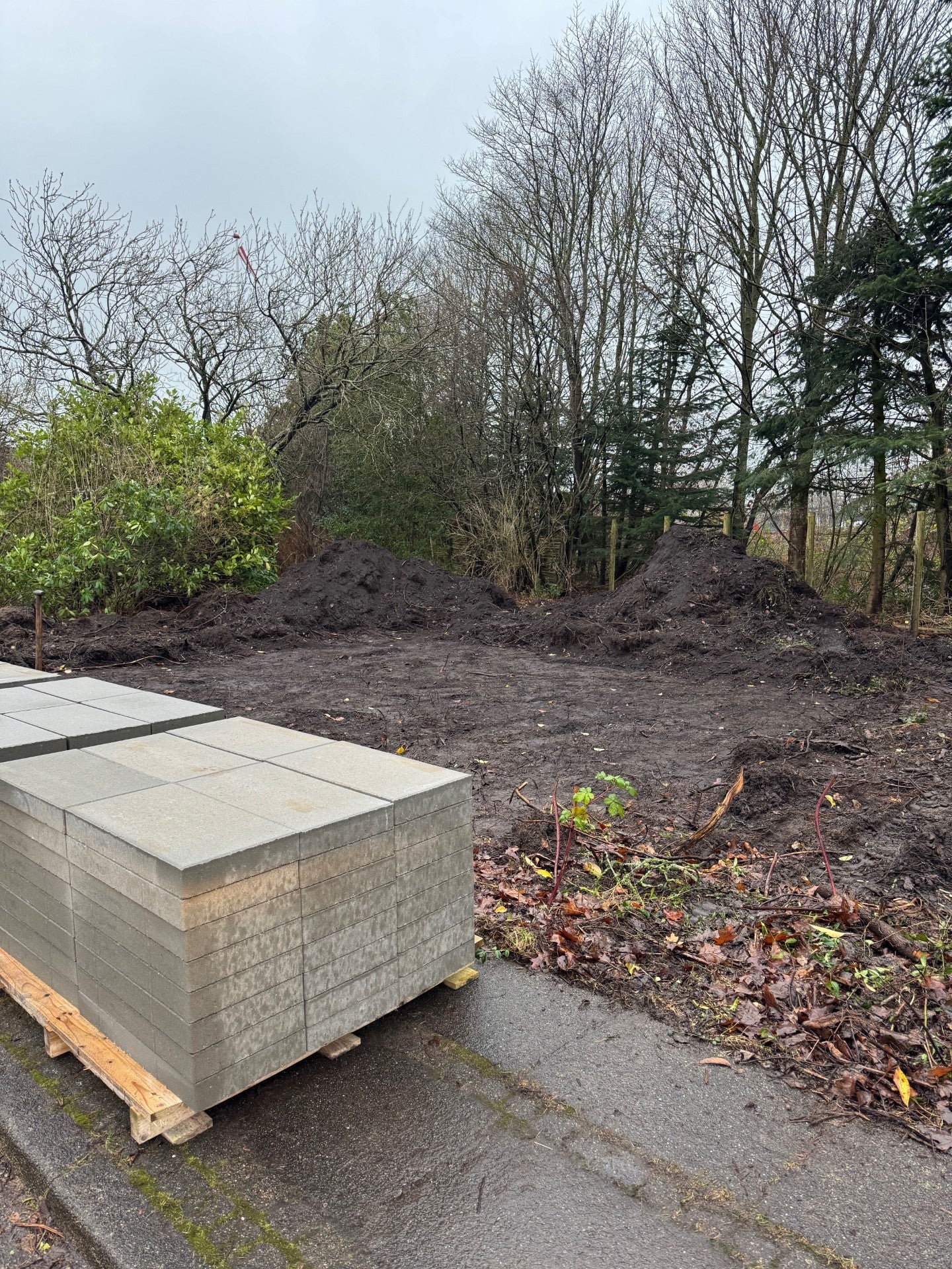Dernæst skulle alle rødderne fra træerne og buskene graves op, så der kunne blive gjort klar til fundamentet.