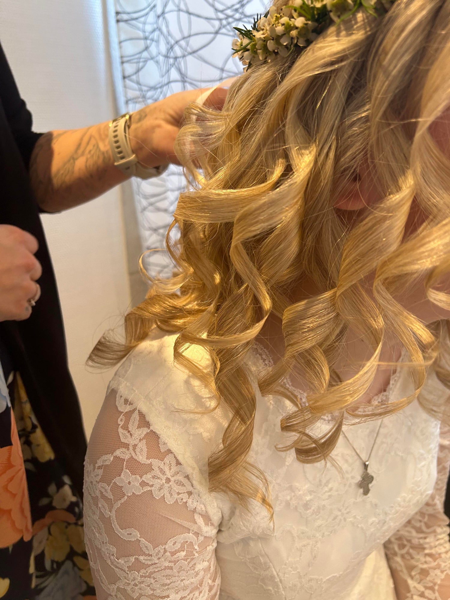Til gengæld synes jeg, at håret gerne må få lidt ekstra gas, både med krøller og pynt, hvis man er til den slags.